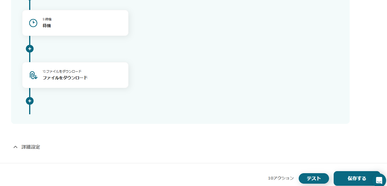 最後まで設定ができたら、アクションが完成しているのでYoomの画面に戻り、「テスト」をクリックしてください。