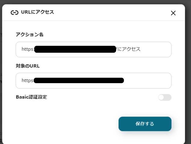 アクション名は自由に設定して、kintoneのログインURLを指定したら「保存する」をクリックしてください。