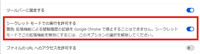 ダウンロードができたら、詳細設定画面で「シークレットモードでの操作を許可する」をONにしてください。