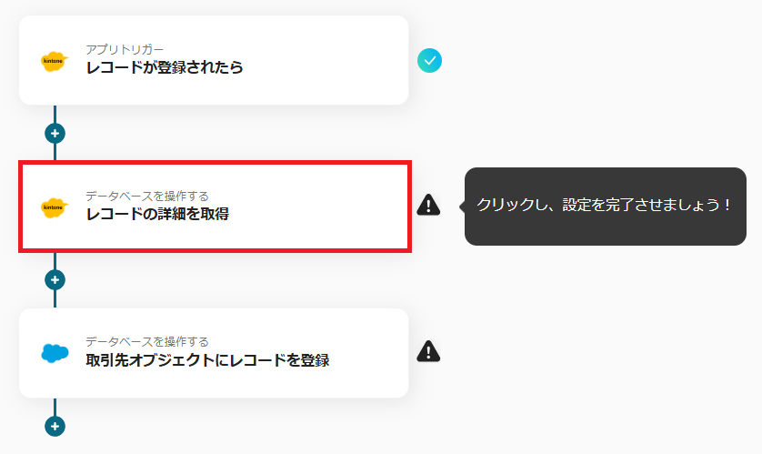 このワークフローを活用すれば、Salesforceに新規リードが登録されると、自動でkintoneにレコードが追加されるため、こうしたデータ連携の課題をスムーズに解消できます。