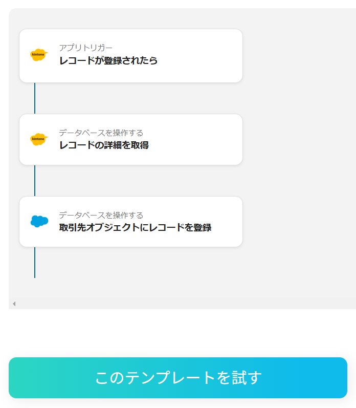 それではここから、ノーコードツールYoomを使って、「kintoneでレコードが登録されたらSalesforceに取引先を登録する」方法を紹介します。