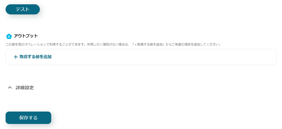 9.テストが成功すると、アウトプットにkintoneから取得した情報が表示されます。