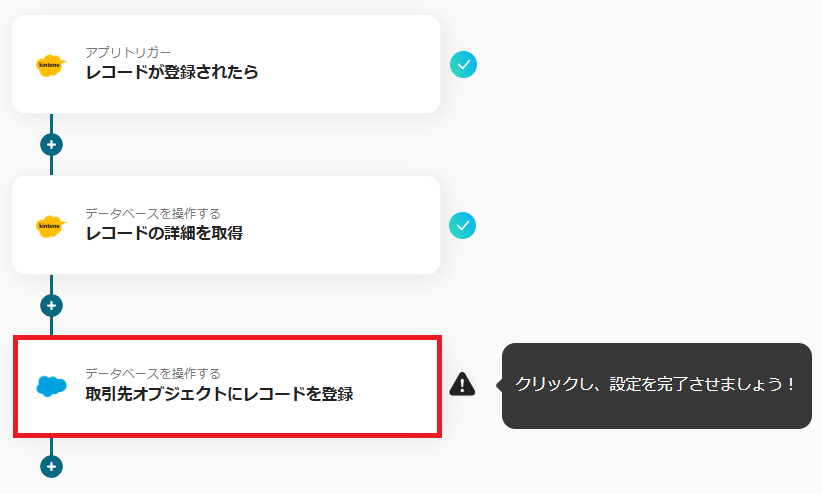 kintoneでレコードが登録されたら、自動的にSalesforceに取引先を登録します。