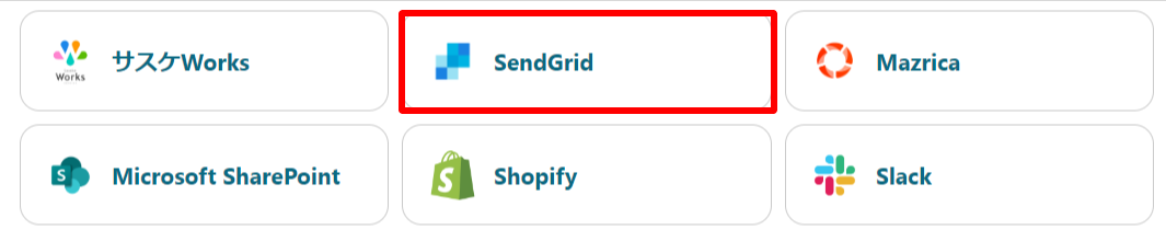 kintoneとSendGridをそれぞれ検索して、表示された内容に沿って入力を進めていきましょう。