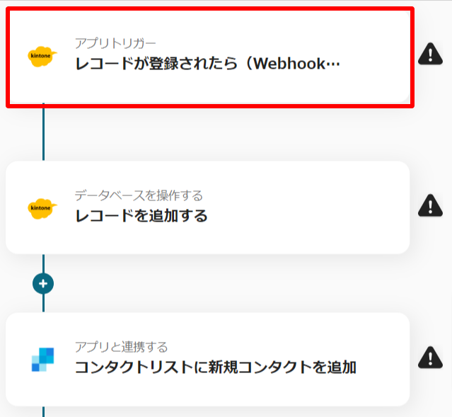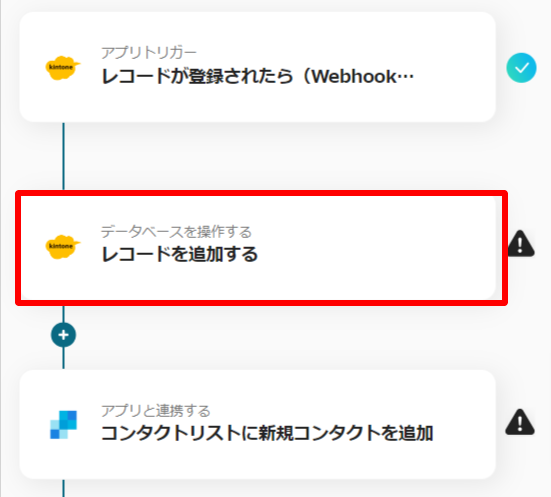 この設定をすることで、kintoneでレコードが追加されたらフローが起動するようになります。