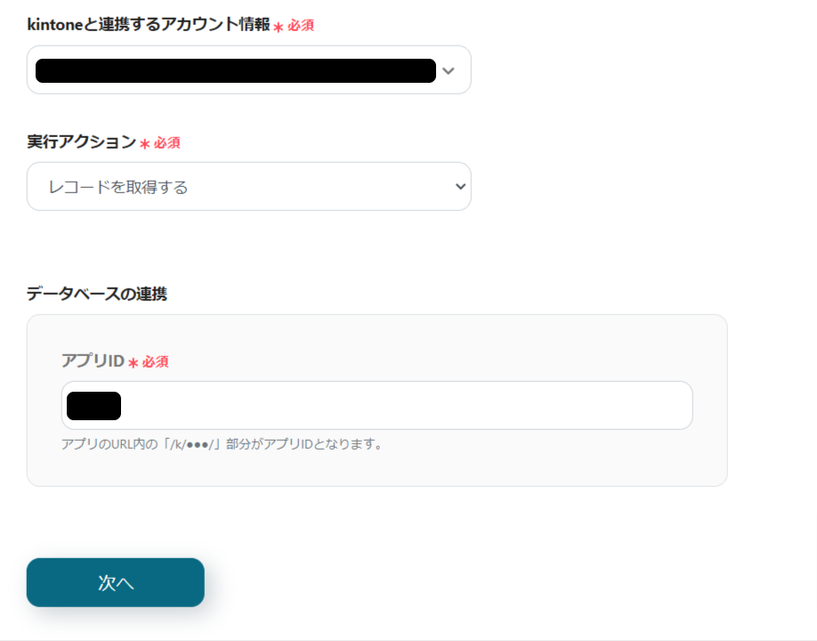 レコードを追加したkintoneのアプリIDを入力、または候補から選択しましょう。