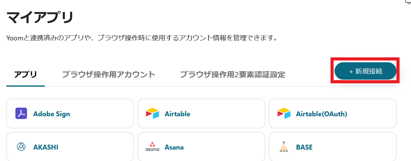 「マイアプリ」をクリックし、「新規接続」を選択してください。