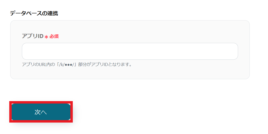 kintoneと連携するアカウント情報を入力します。