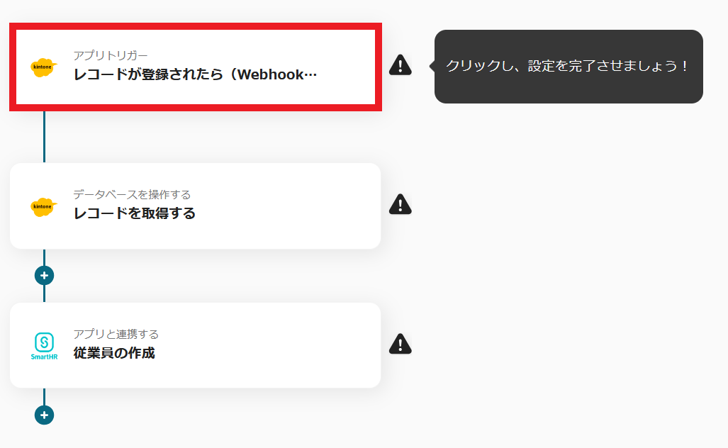 今回は、【kintoneにレコードが登録されたら、SmartHRに社員を登録する】というフローを作成します。