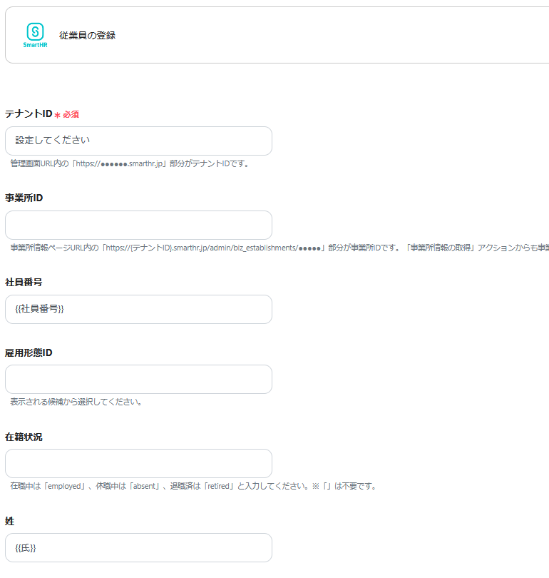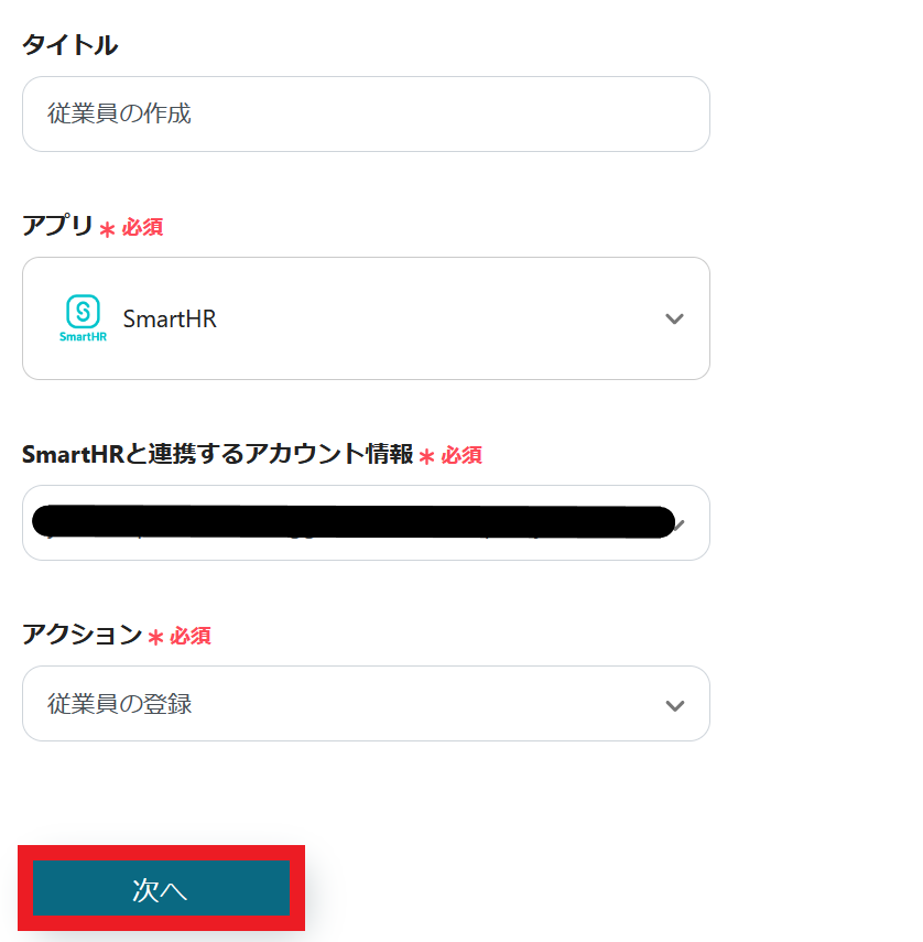 2.SmartHRと連携するアカウント情報を入力します。