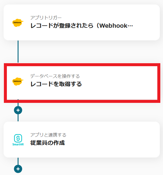 このフローを活用することで、kintoneで従業員情報を登録すると、それをトリガーにしてSmartHRに自動で情報が反映されるため、入力作業の負担を軽減できます。