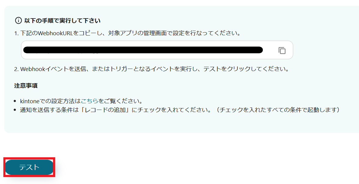3. WebhookURLをコピーし、管理画面で設定を行ってください。