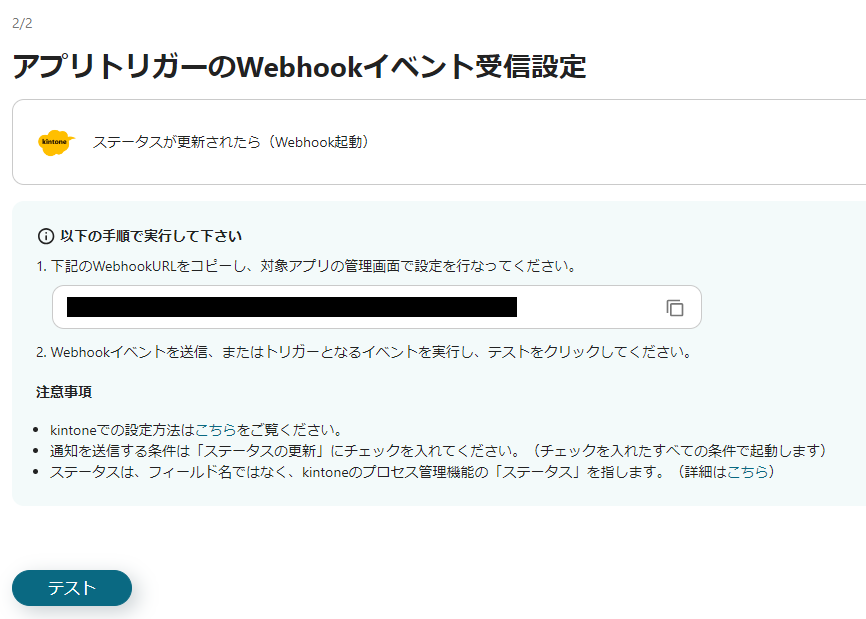 4. アプリトリガーのWebhookイベント受信設定を行います。