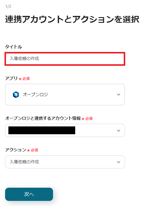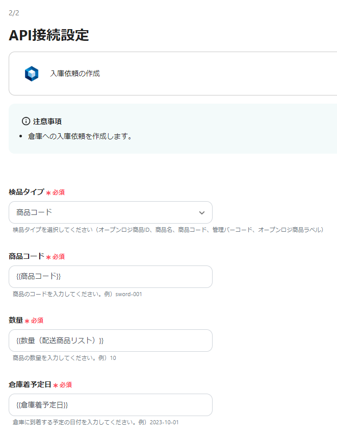 ステップ5: オープンロジの入庫依頼を作成するアクションの設定