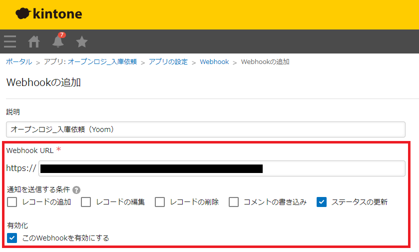kintoneにレコードが登録されたら、Slackの特定のチャンネルに通知をします。