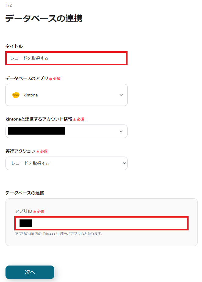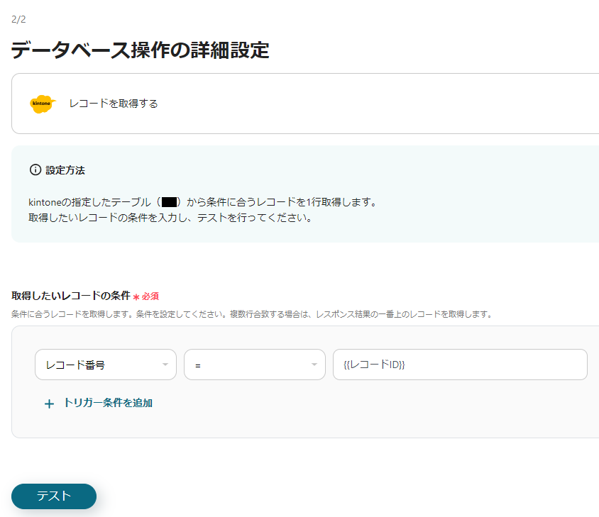 ステップ4: kintoneのレコード情報を取得するアクションの設定