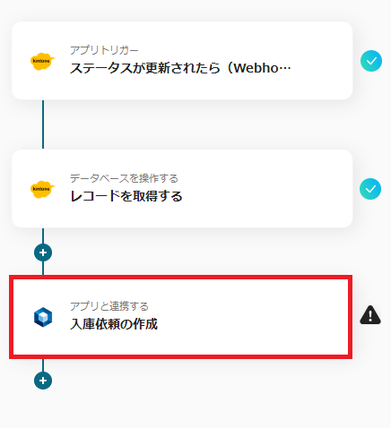 以上で、「kintoneでステータスが更新されたらオープンロジで入庫依頼を作成する」フローの完成です。