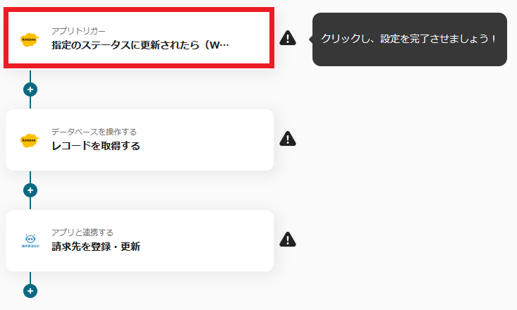 1.まず、一番上の「指定のステータスに更新されたら(Webhook起動)」をクリックします。