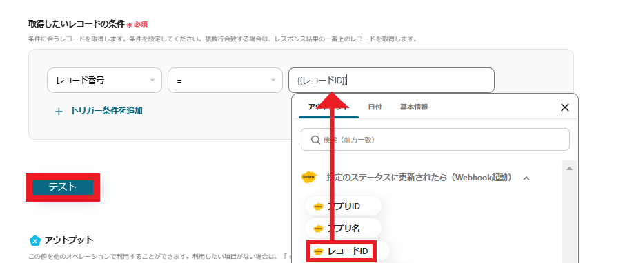 3.取得したいレコードの条件を設定します。