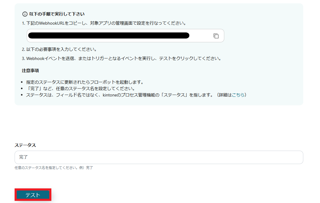 ・kintoneで指定のステータスに更新されたら起動するトリガーの設定