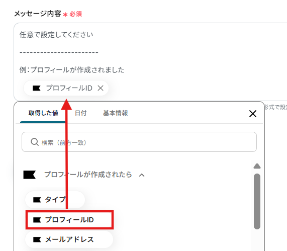 アウトプット(取得した値)を活用することで、フロー起動ごとに変動するKlaviyoのプロフィール情報をメッセージに反映することができます。