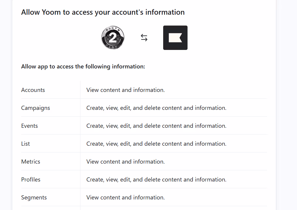 次に、Klaviyoへのアクセス権限を確認する画面が表示されます。最下部までスクロールして「Allow」をクリックしましょう。