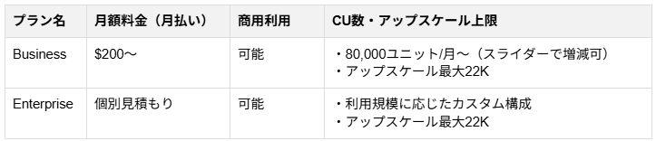 Businessプラン :80,000ユニット/月〜(スライダーで増減可)