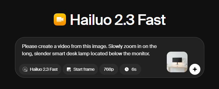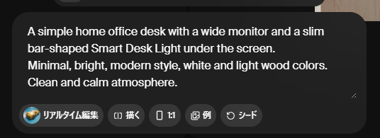 検証②:Image to Video機能による静止画の動画化 検証①で作成した「スマートデスクライトのあるデスク画像」を元データとして使い、動画化の精度 を検証しました。 指示したプロンプトは以下の通りです。