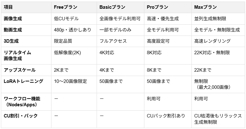 ✅Krea AI プラン別の違いを徹底比較