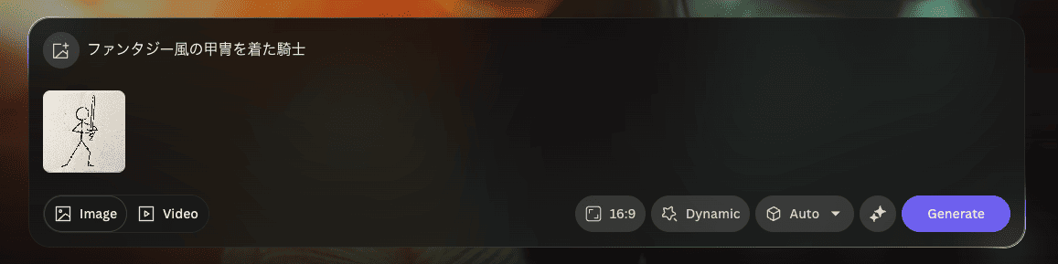 日本語で入力すると、全く関係のない画像が表示されてしまったため、プロンプトを英語に翻訳して入力したところ、画面内が瞬時に切り替わり、イメージに近い構図が表示されました。