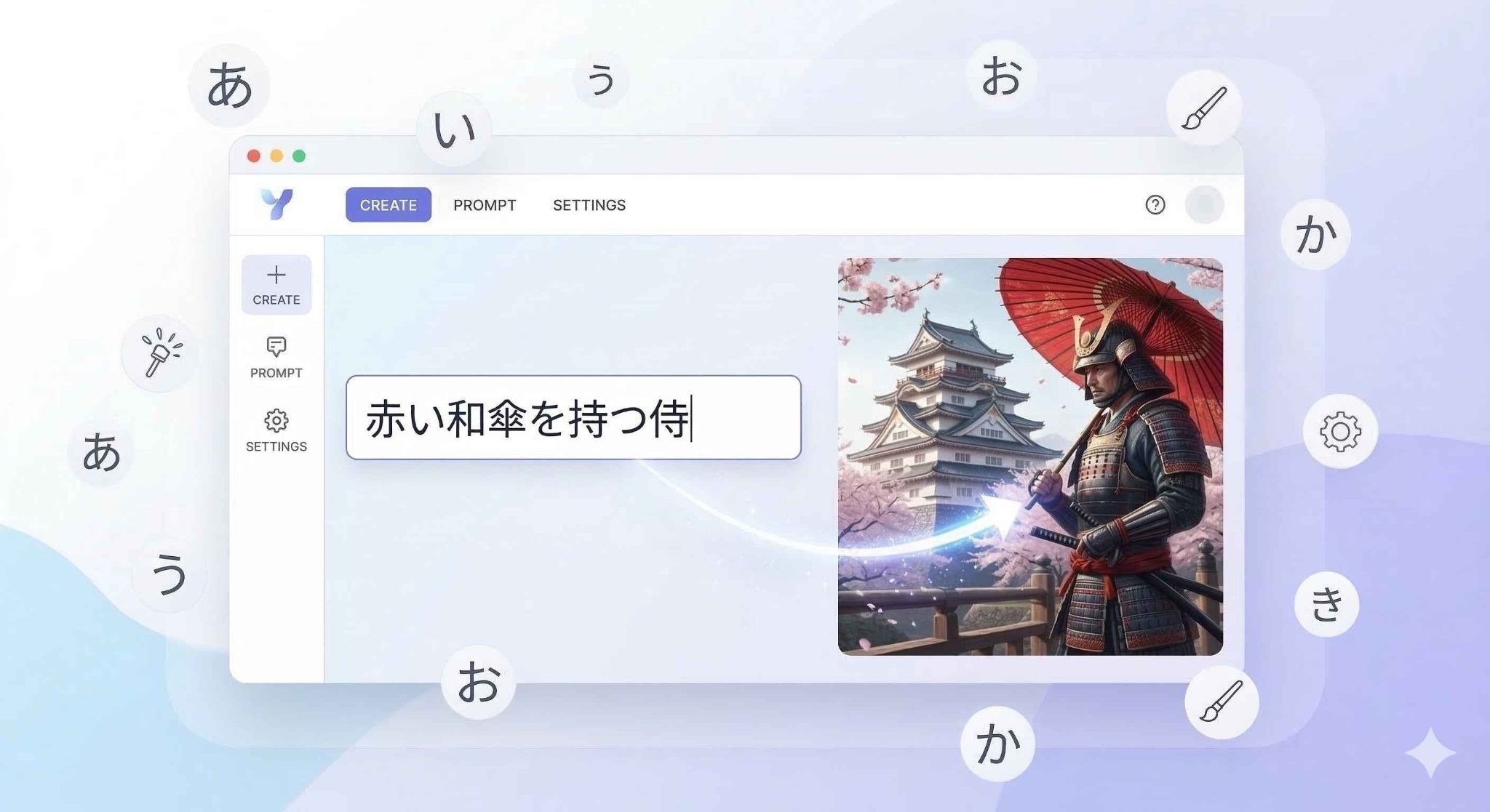 また、プロンプト入力欄に日本語を打ち込むこと自体は可能であり、AIはある程度その意図を汲み取って画像を生成してくれます。