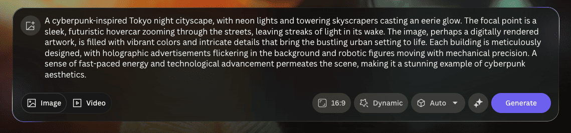 Text to ImageとPrompt Generation 代表的な機能である「Text to Image(テキストからの画像生成)」は、プロンプトを入力するだけで圧倒的なクオリティのビジュアルを作成できます。