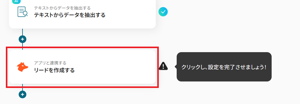 ステップ5:Hunterでリードを作成する LINE公式アカウントで受け取ったメッセージから、AI機能でリード情報を取得できたら、その情報を使ってHunterにリードを作成するステップに入ります。