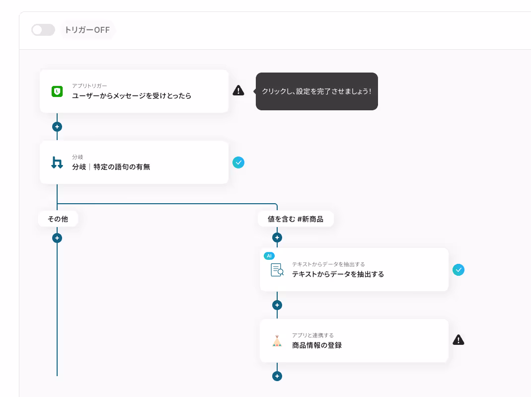 このフローを活用することで、特定の条件に合致するLINEメッセージを受信した際に、自動的にTrelloのカードを更新することが可能になり、効率的なタスク管理が実現します。