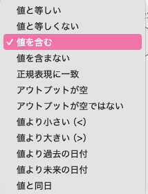 値に対しての条件はプルダウン内から選択が可能です。