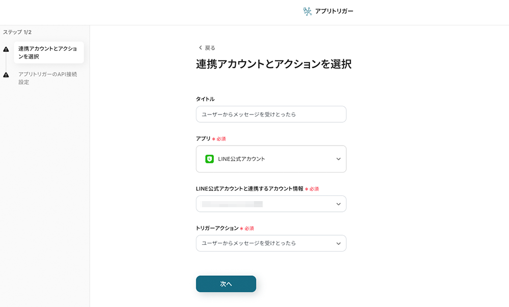 (1/2)連携アカウントとアクションを選択