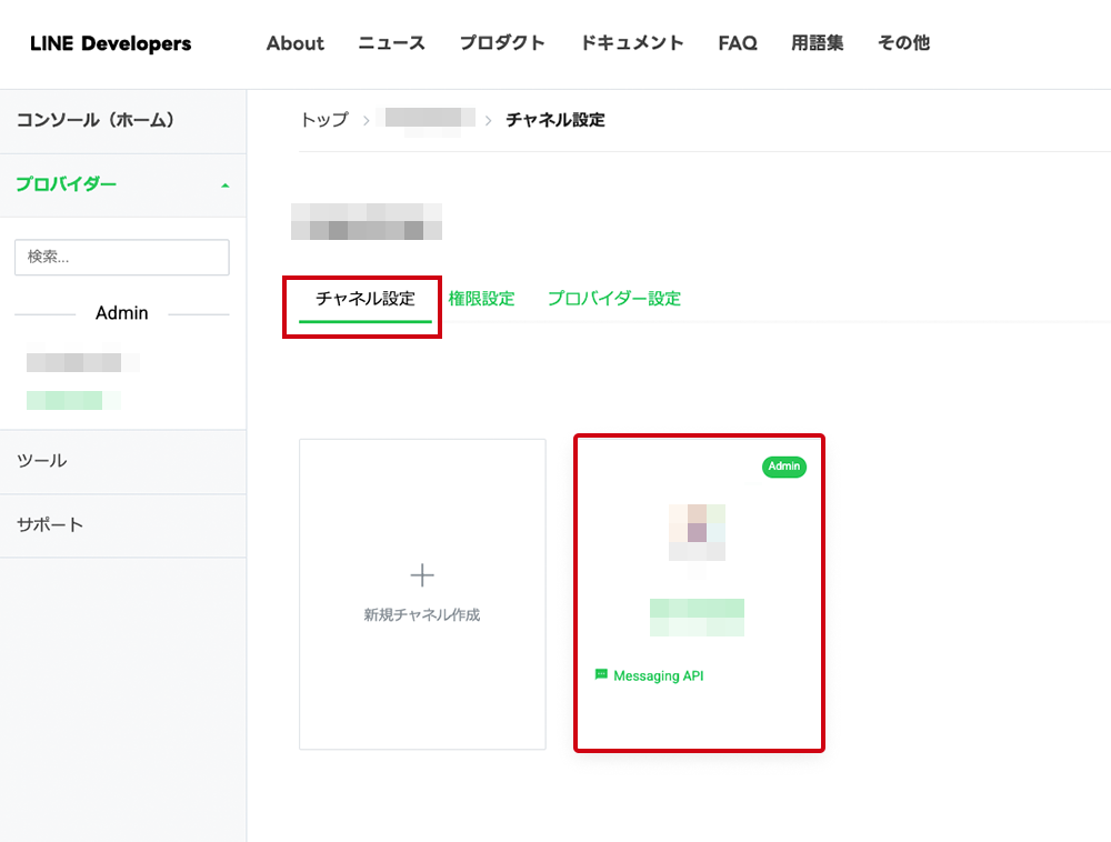 - 該当のチャンネルを選択肢から選んで、チャンネル設定<Messageing APIに進みます。