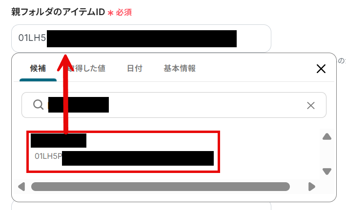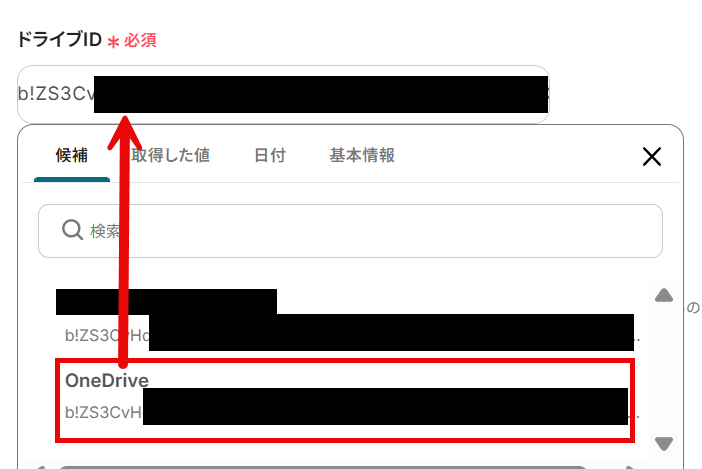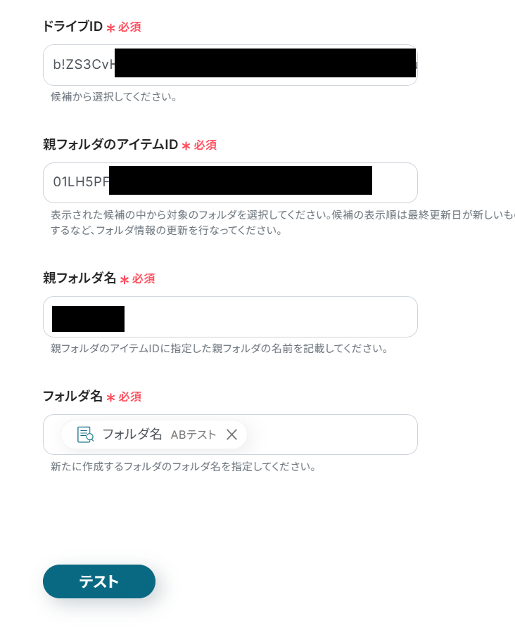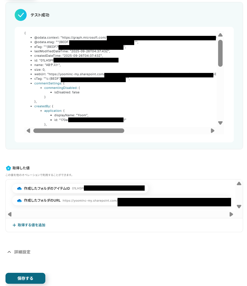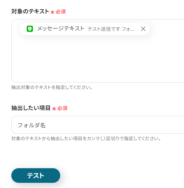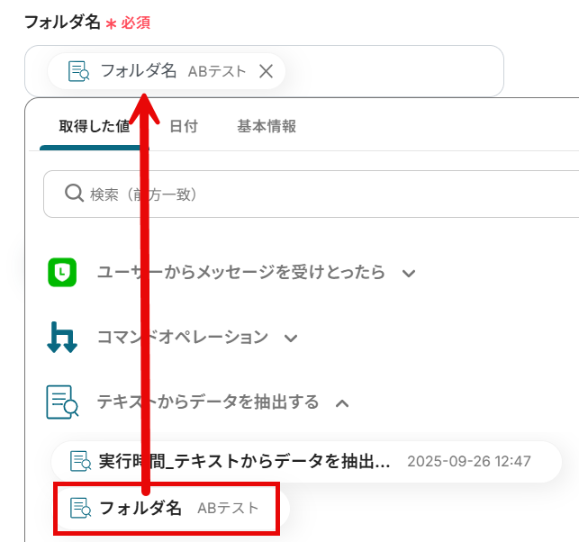 前項で取得した値のテキストから、OneDriveのフォルダ作成時に必要になるデータを抽出する設定をしましょう!