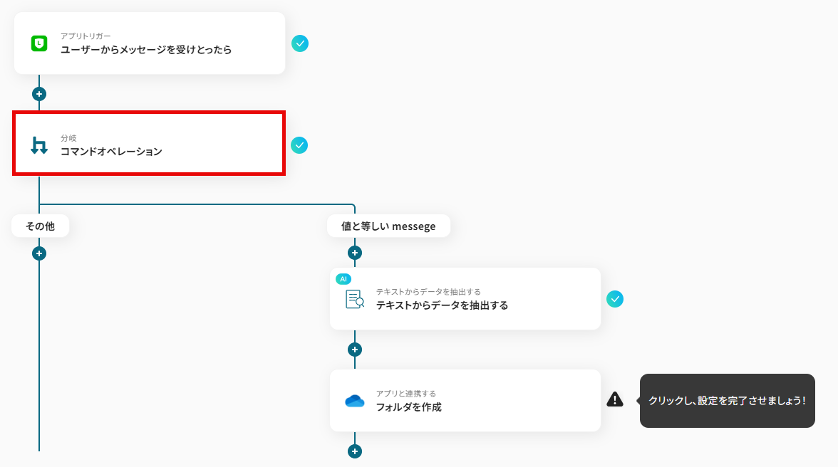 このワークフローを活用すれば、LINE公式アカウントで特定のメッセージを受信するだけで、内容に応じたフォルダがOneDriveに自動で作成されるため、こうした課題をスムーズに解消できます。
