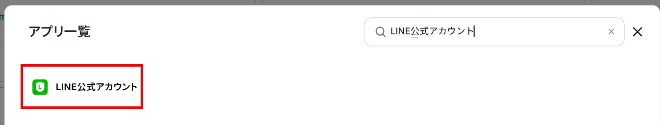マイアプリから「新規接続」を押した後、LINE公式アカウントを検索し、クリックしてください。