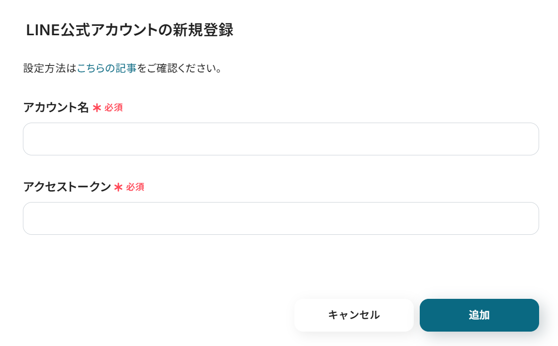 アカウント名とアクセストークンを入力したら、「追加」をクリックしLINE公式アカウントのアプリ連携は完了です!