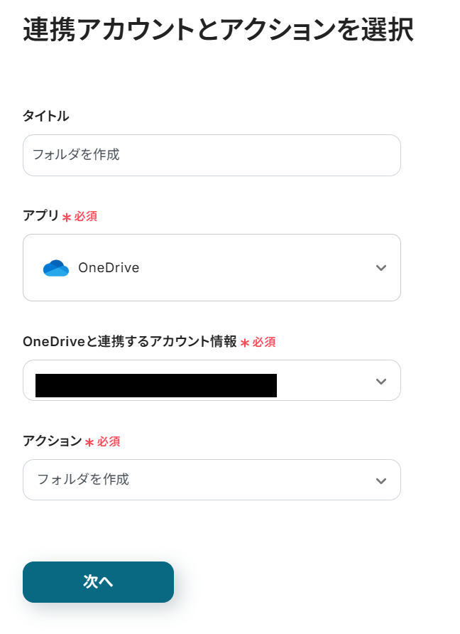 Notionのデータベースに新しくページが作成されたら、OneDriveにフォルダを作成するフローです。