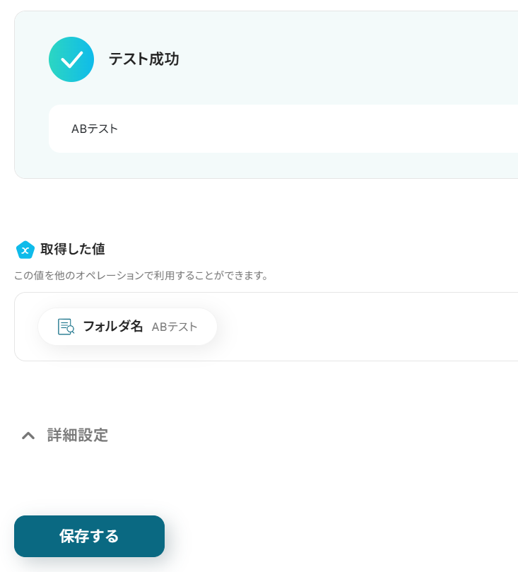 このフローはAIや正規表現によるデータ抽出処理を活用しているため、手動でのフォルダ作成や情報整理の手間を削減し、顧客ごとの情報を体系的に管理できるようになります。