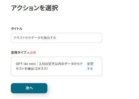 アクションを選択する画面が表示されるので「次へ」をクリックします。