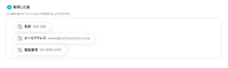 この後、この取得した値の内容を入力に使用することができます。