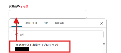 事業所IDには以下のように表示される候補から、任意の事業所IDを選択しましょう。