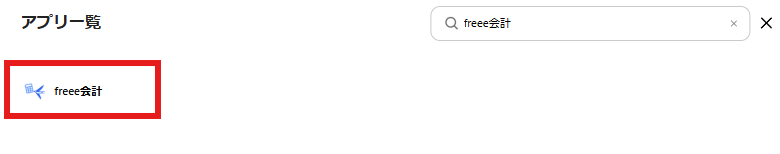 検索窓にfreee会計と入力し、表示された候補をクリックします。