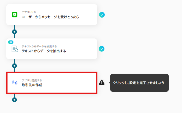 「LINE公式アカウントにメッセージが投稿されたら、freee会計で取引先を作成する」ワークフローは、YoomのAPI連携やAIを駆使したシンプルな自動化です。