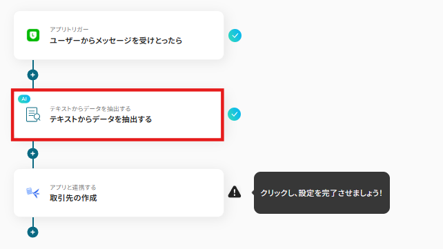 AIを用いてテキストからデータを抽出するための設定を行います。