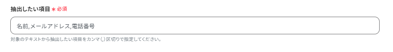 抽出したい項目に「名前」「メールアドレス」「電話番号」を入力しました。